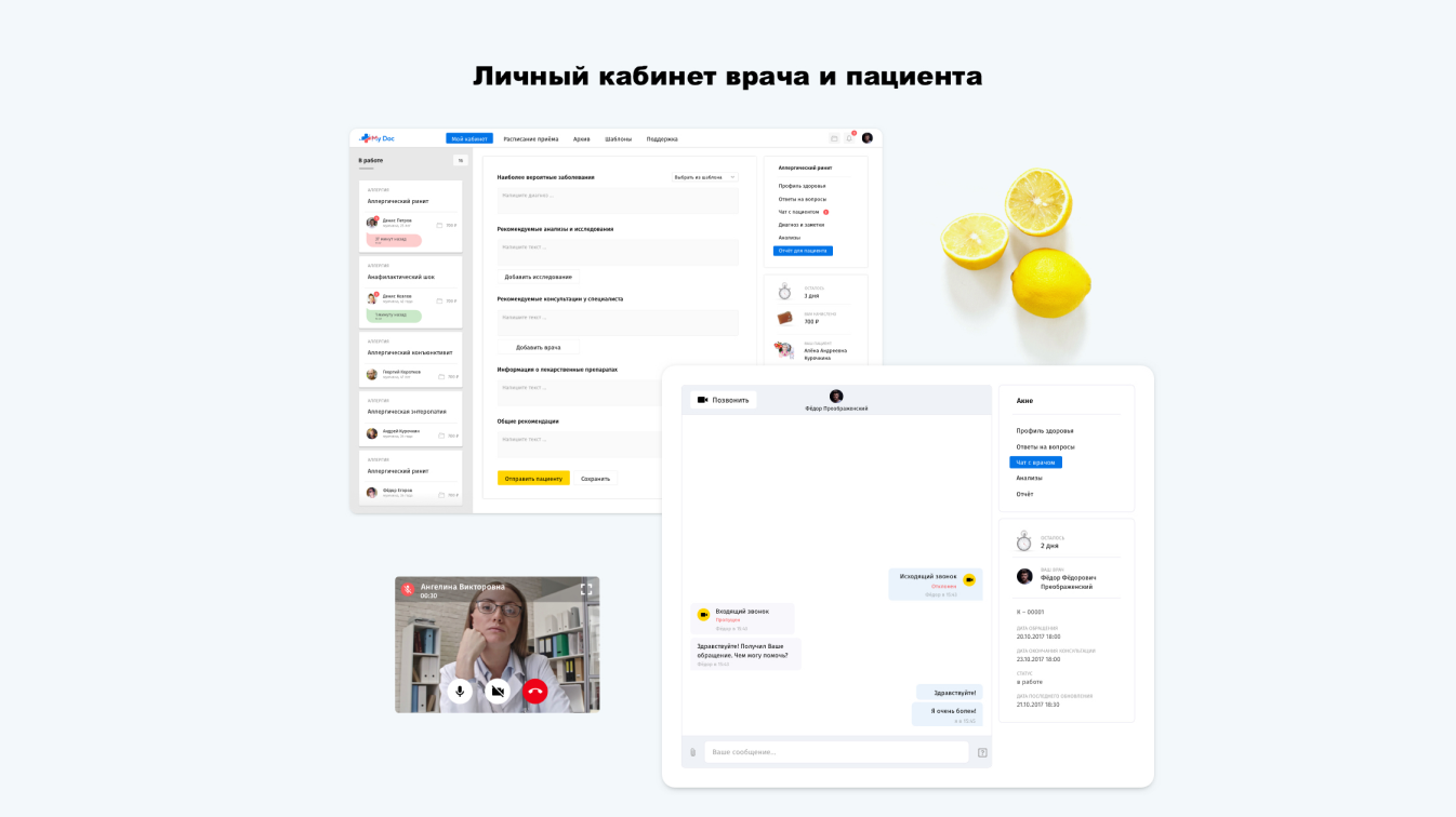 Заказчику требовалось разработать онлайн-сервис медицинских консультаций, в котором пациент сможет получить консультацию врача с помощью компьютера или телефона.