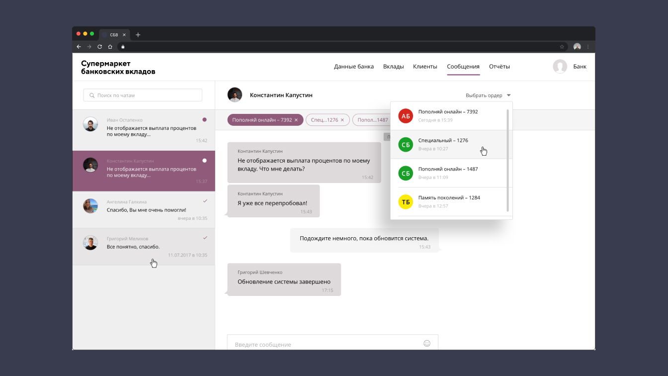 Разработана веб-версия продукта, состоящая из ЛК для администратора, сотрудников банка и клиента. Рабочая версия передана заказчику.